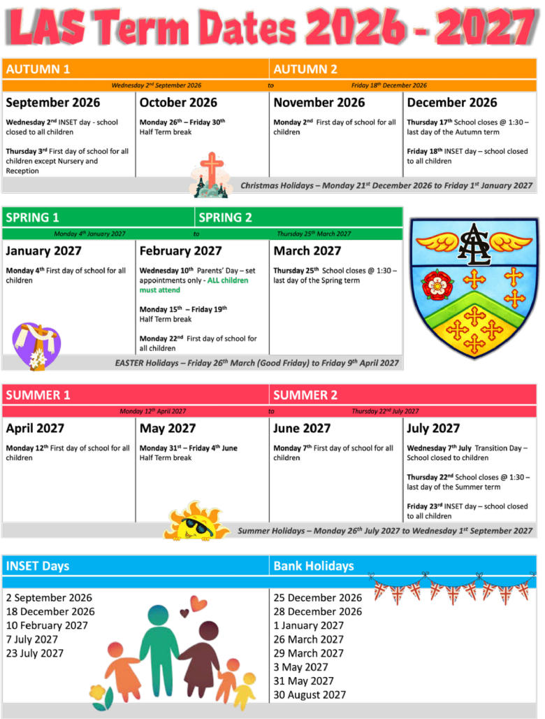 Monday 13 April to Monday 20 July 2026 INSET day: Monday 20 July 2026 |