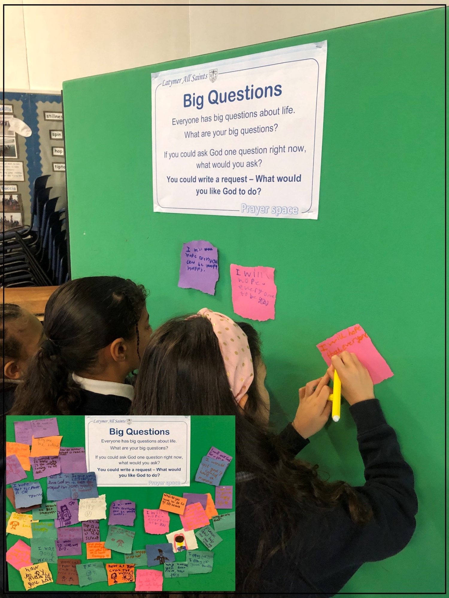 • Through a creative and engaging RE week and day, where children across the whole school explore a theme or big question in an age appropriate way.