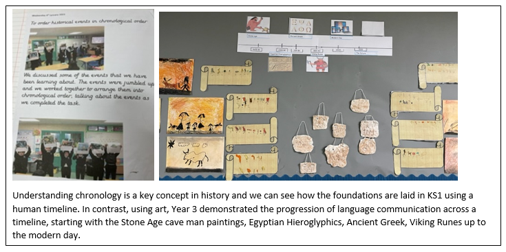 Throughout our History curriculum, we help children to understand the complexity of people’s lives, the process of change, the diversity of societies and relationships between different groups, as well as their own identity. In addition, children gain an understanding about how past events and challenges that have occurred in the past have had an impact on the difficulties we continue to face in the present day.